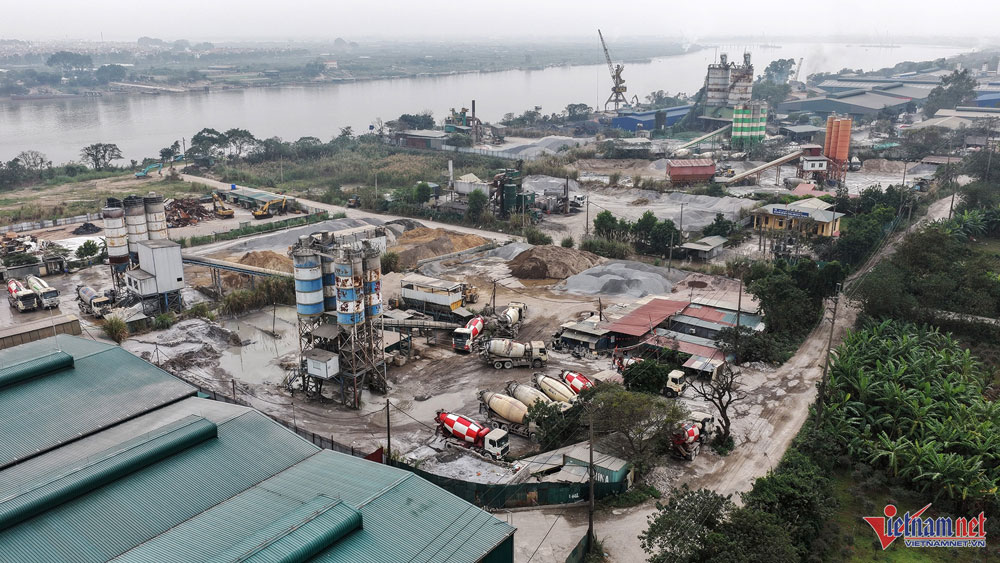 Hình ảnh các trạm trộn bê tông tại bãi sông Hồng thuộc địa bàn phường Lĩnh Nam. Ảnh: Đức Hoàng