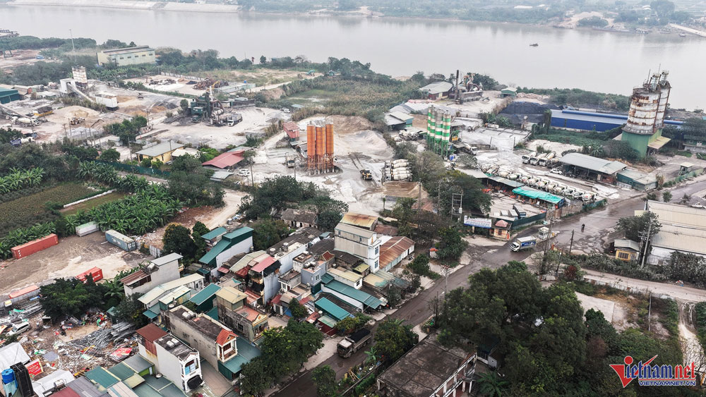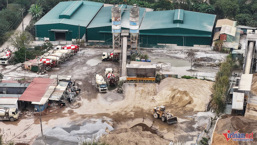 Hàng loạt trạm trộn bê tông hoạt động nhiều năm ngay sát khu dân cư. Ảnh: Đức Hoàng