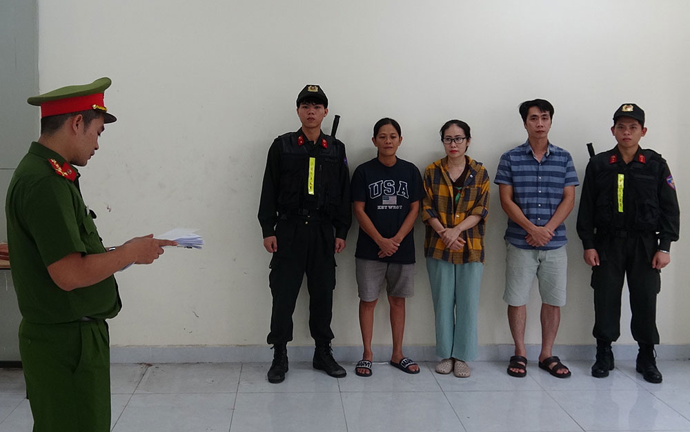 Ba đối tượng bị bắt giữ (từ trái qua): Võ Thị Thu Oanh, Tăng Thị Mỹ Hòa, Tăng Hoàng Vinh. Ảnh: CA