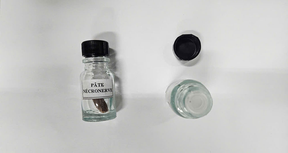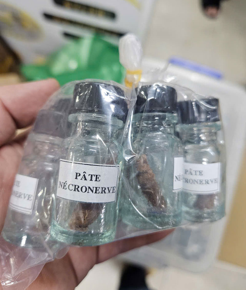 Tại đây, công an phát hiện cơ sở đang bày bán số lượng lớn sản phẩm ArsenicBlue 5g và Pâte Nécronerve (thường gọi là thuốc diệt tủy dùng trong nha khoa).
