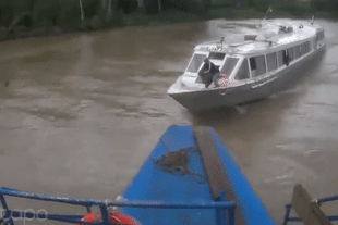 Khoảnh khắc tàu cao tốc đâm trúng phà trên sông khiến nhiều du khách bị thương