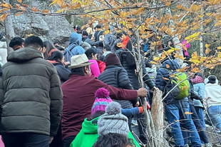 Du khách đổ xô lên núi 'săn' thu vàng, lá đỏ, gây cảnh hỗn loạn