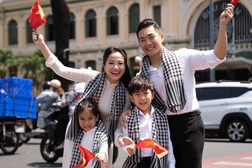 MC Hồng Phượng và chồng NSƯT Quốc Cơ thực hiện bộ ảnh ý nghĩa mừng 30/4