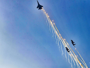 Khoảnh khắc tiêm kích Su-30MK2 thả bẫy nhiệt rực rỡ trên bầu trời TPHCM sáng 30/4