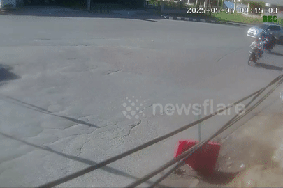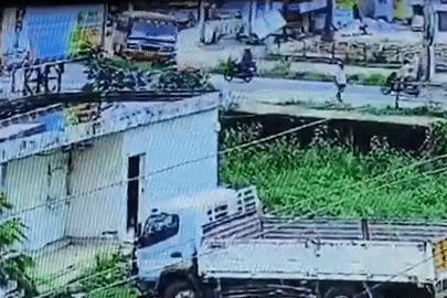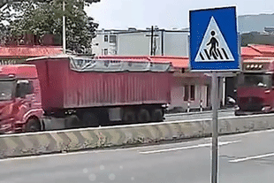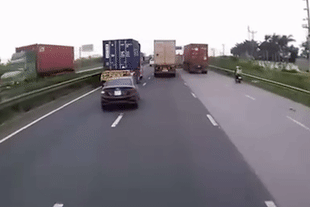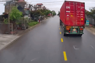Người phụ nữ phản xạ nhanh như chớp tránh 2 xe tải đâm nhau trên đường