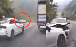 Vượt ẩu ngay khúc cua, xe con đâm nát đầu ô tô đi đúng luật