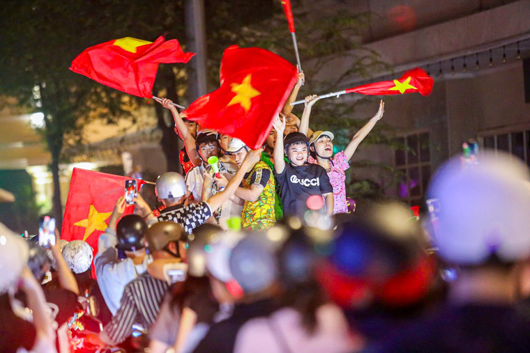 Người hâm mộ TPHCM vỡ òa, 'đi bão' ăn mừng tuyển Việt Nam thắng Thái Lan