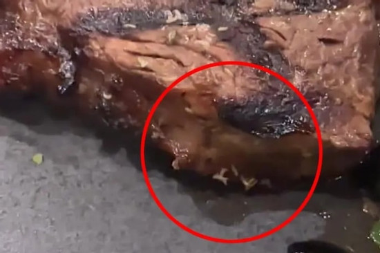 Nữ thực khách sốc phát hiện dòi trong miếng bít tết 1 triệu đồng