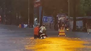 Mưa xối xả nhiều giờ không nghỉ, người Hà Nội 'rẽ sóng, lội xe' trên đường ngập