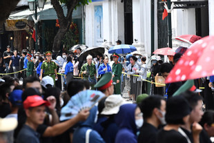 Người dân đội nắng đứng kín nhiều tuyến phố Hà Nội, chờ tiễn đưa Tổng Bí thư