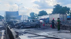 TPHCM: Gần 10 ô tô gây tai nạn liên hoàn, ít nhất 3 xe bốc cháy ở cầu Phú Mỹ