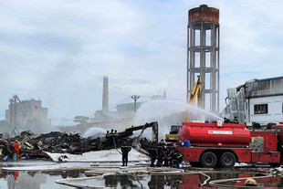 Biển lửa cuồn cuộn bao trùm xưởng nón bảo hiểm, công nhân tháo chạy