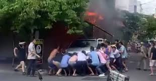 Khoảng 20 người hợp sức kéo ô tô khỏi đám cháy quán cà phê ở TP.HCM