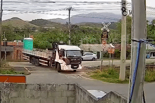 Xe tải băng qua đường ngang bị tàu hỏa đâm, kéo lê hàng chục mét