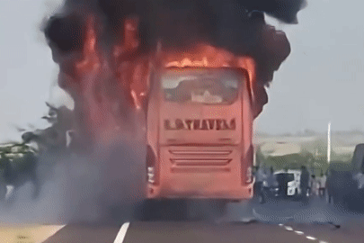 Xe buýt chở 57 hành khách bốc cháy dữ dội trên cao tốc, 20 người thiệt mạng