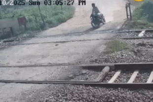 Trượt ngã xe trên đường ray, người đàn ông bị tàu hỏa húc văng