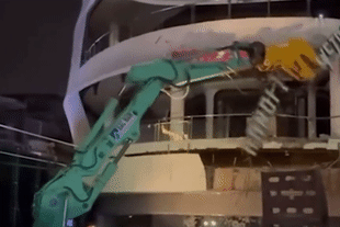 Máy cắt, xe cẩu hạng nặng bắt đầu phá dỡ