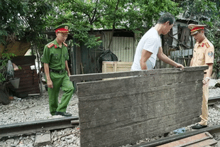 Giải toả đoạn đường người dân kê bê tông, đặt tấm gỗ "cản trở" tàu hoả