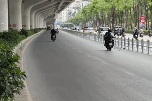 Hình hài hàng rào cứng chia đường ô tô, xe máy đi riêng ở Hà Nội