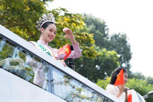 Miss International 2024 Thanh Thủy xúc động diễu hành trên xe bus 2 tầng ở TPHCM