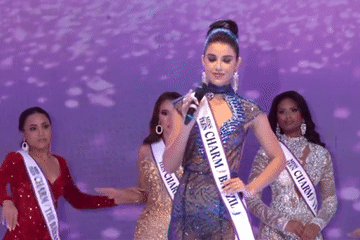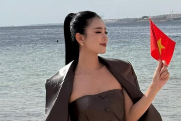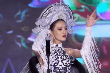 Á hậu Khánh Linh 'nổi da gà' khi diễn trang phục dân tộc tại Miss Intercontinental