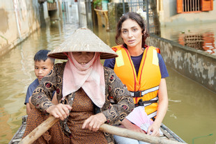Thí sinh Miss Cosmo chèo thuyền ở Tràng An, trao quà cho người dân gặp bão lũ