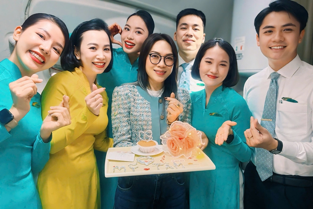 Mỹ Tâm bất ngờ với món quà từ các tiếp viên hàng không tặng trên máy bay