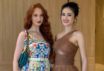 Ý Nhi trò chuyện và nhận quà từ các thí sinh Miss World 2025